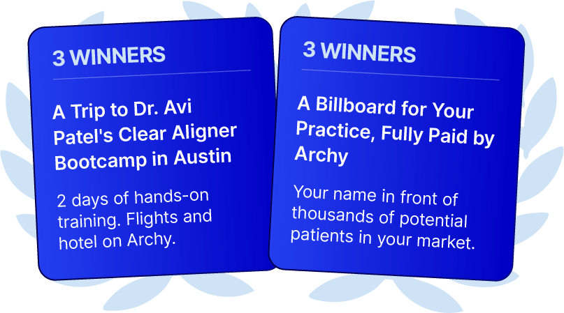 Book a quick demo of Archy and you're automatically entered to win one of 2 prizes, including trips to Austin and billboards for your practice.